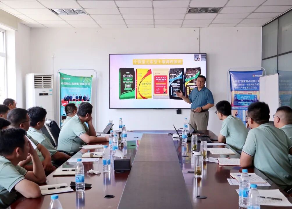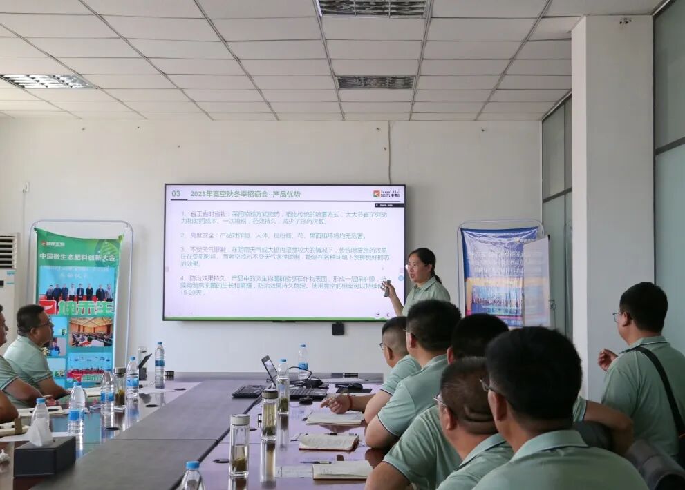 在培訓環節,技術總監趙鋼勇以“‘坤禾+’應用場景定位,聚焦轉化銷量提升”為主題,深入剖析了公司核心產品的技術優勢及田間應用案例,幫助銷售人員精準把握不同作物、不同區域的用肥需求,提升市場轉化能力。市場部部長馬靜系統講解了2025年新產品規劃及市場推廣策略,重點介紹了今年上市的幾款創新產品,并詳細解讀了“坤禾產品我直說”活動的執行要點,強化全員對品牌推廣的認知。