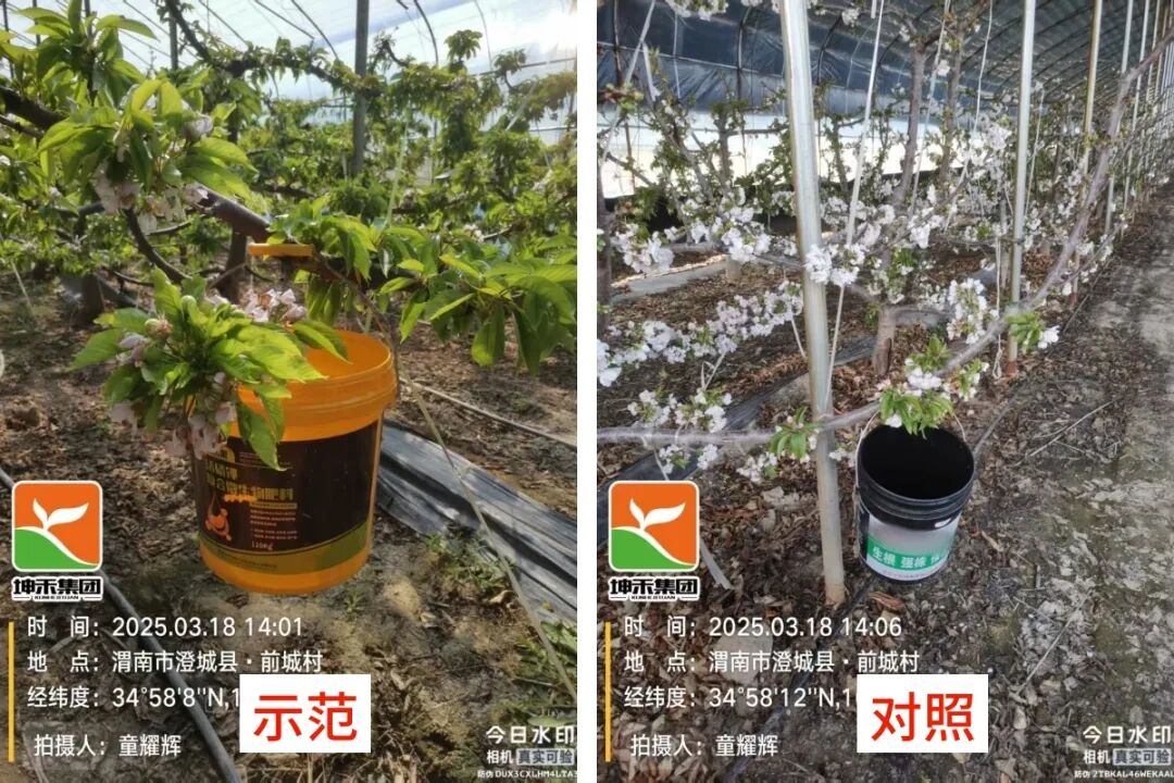 試驗結果表明,“坤禾+”方案對櫻桃種植具有顯著的綜合效益:不僅能促進枝梢快速抽發(fā)、增強樹勢和抗逆性,還能促使櫻桃快速開花,顯著提升開花質量和數(shù)量;在結果期,“坤禾+”方案有效提高了坐果率,實現(xiàn)保花保果,使櫻桃提前上市,創(chuàng)造更高經(jīng)濟價值;更重要的是,施用后樹勢良好,為來年花芽分化奠定了堅實基礎,展現(xiàn)出“當季增產(chǎn)+持續(xù)增效”"的獨特優(yōu)勢。