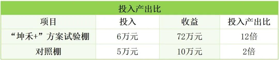 6月采收季結束后,實際銷售數(shù)據(jù)印證了“坤禾+”方案的卓越效果。采用“坤禾+”方案的4個試驗棚總銷售額達72萬元,而4個對照棚僅實現(xiàn)10萬元銷售額。銷售收入是對照的7倍多。