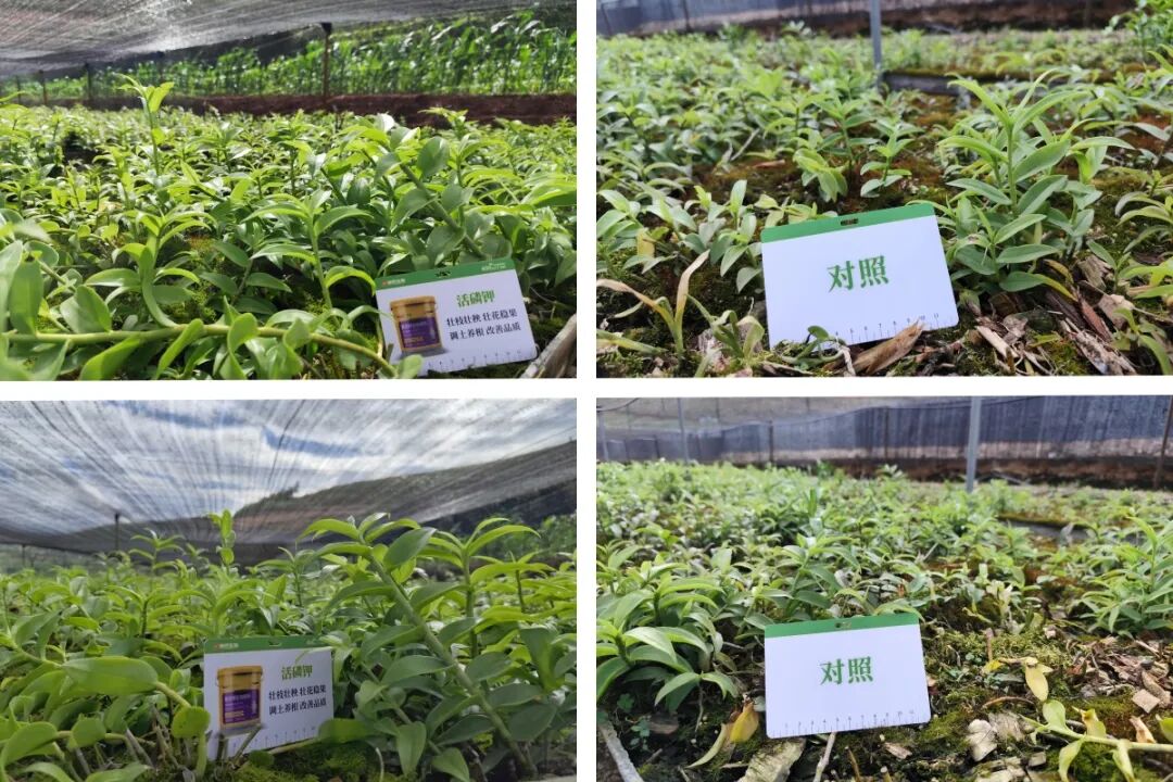▲施用活菌多根石斛生長情況對比(左邊為示范,右邊為對照)